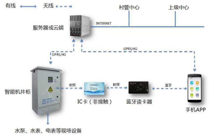 (2)每眼机井用水实现独立控制,用户可通过射频卡进行机井的启停、缴费等相关活动;根据每眼机井的用户数量及灌溉面积,实现一机一卡、一机多卡和一卡多机灵活管理模式;管理单位在异常情况下可远程闭井。