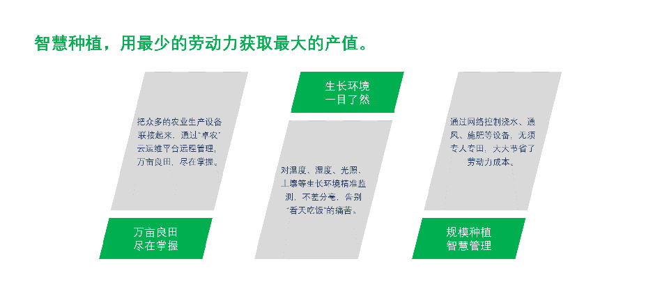 该解决方案通过对用户日常工作量的减少;提供科学的养殖方法;实时的监控手段;为用户提高种植产量提供更多的可能性。